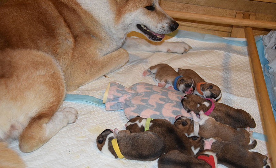 na świat przyszły nasze pierwsze zdrowe i silne szczeniaki: 2 chłopców i 6 dziewczynek.